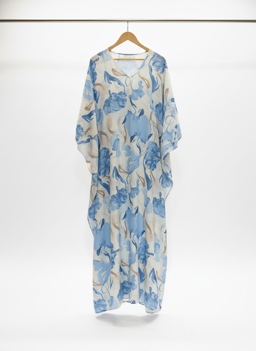 Abaya longue et fluide à la coupe papillon, conçue pour offrir un tombé ample et élégant. Son imprimé floral délicat apporte une touche féminine et raffinée, idéale pour un style à la fois chic et naturel.