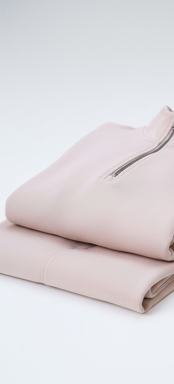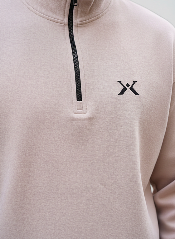 Le haut présente un col montant avec fermeture zippée ainsi que des manches longues légèrement resserrées aux poignets, offrant une coupe nette et moderne.