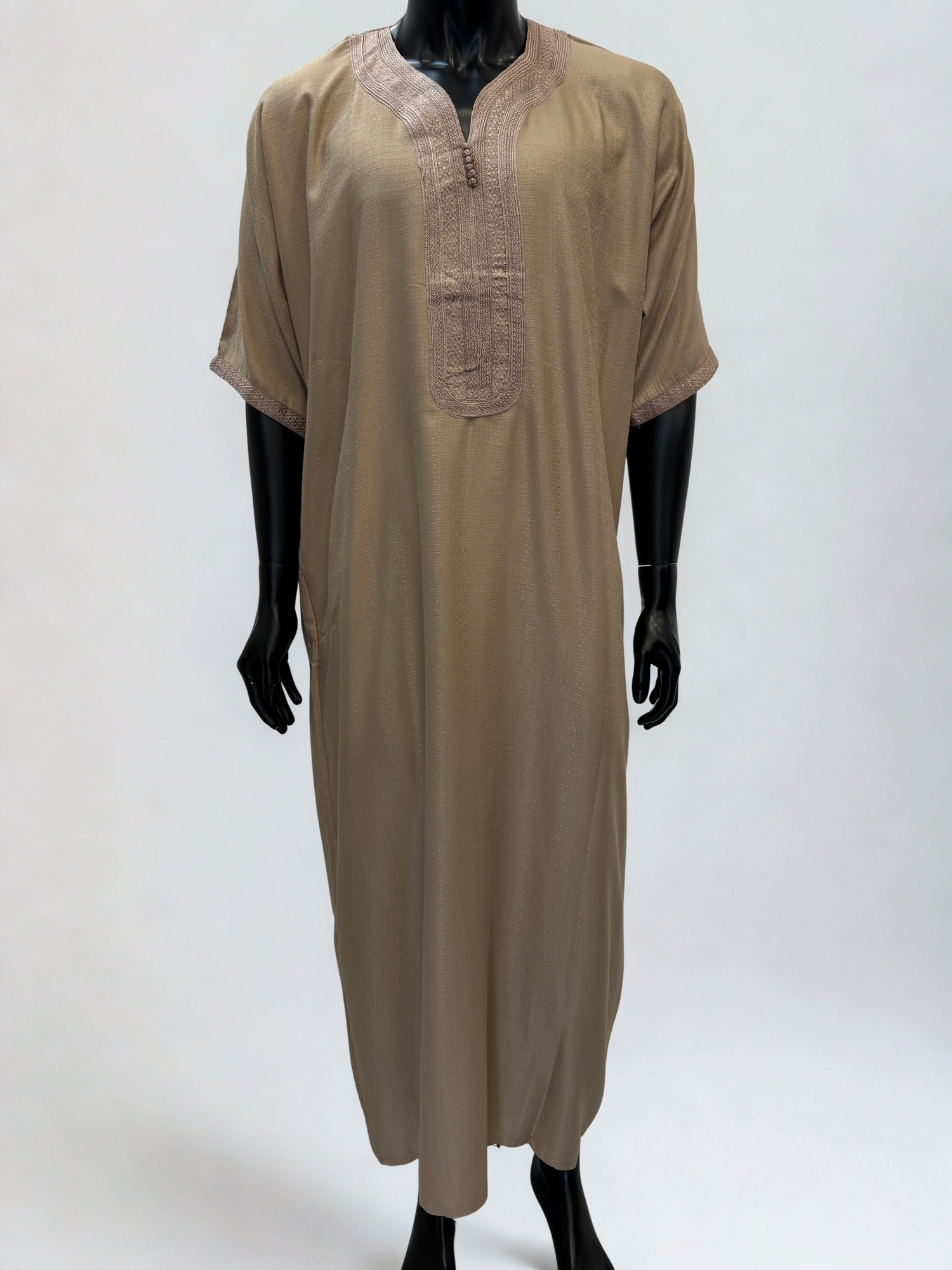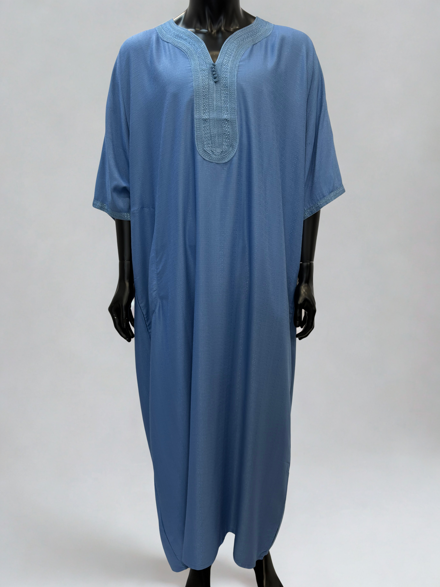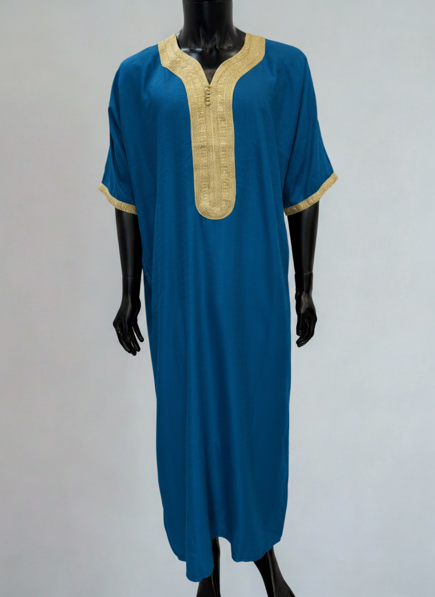 La gandoura TANGER est une gandoura traditionnelle marocaine pour homme, confectionnée en lin, reconnue pour sa légèreté et sa respirabilité.